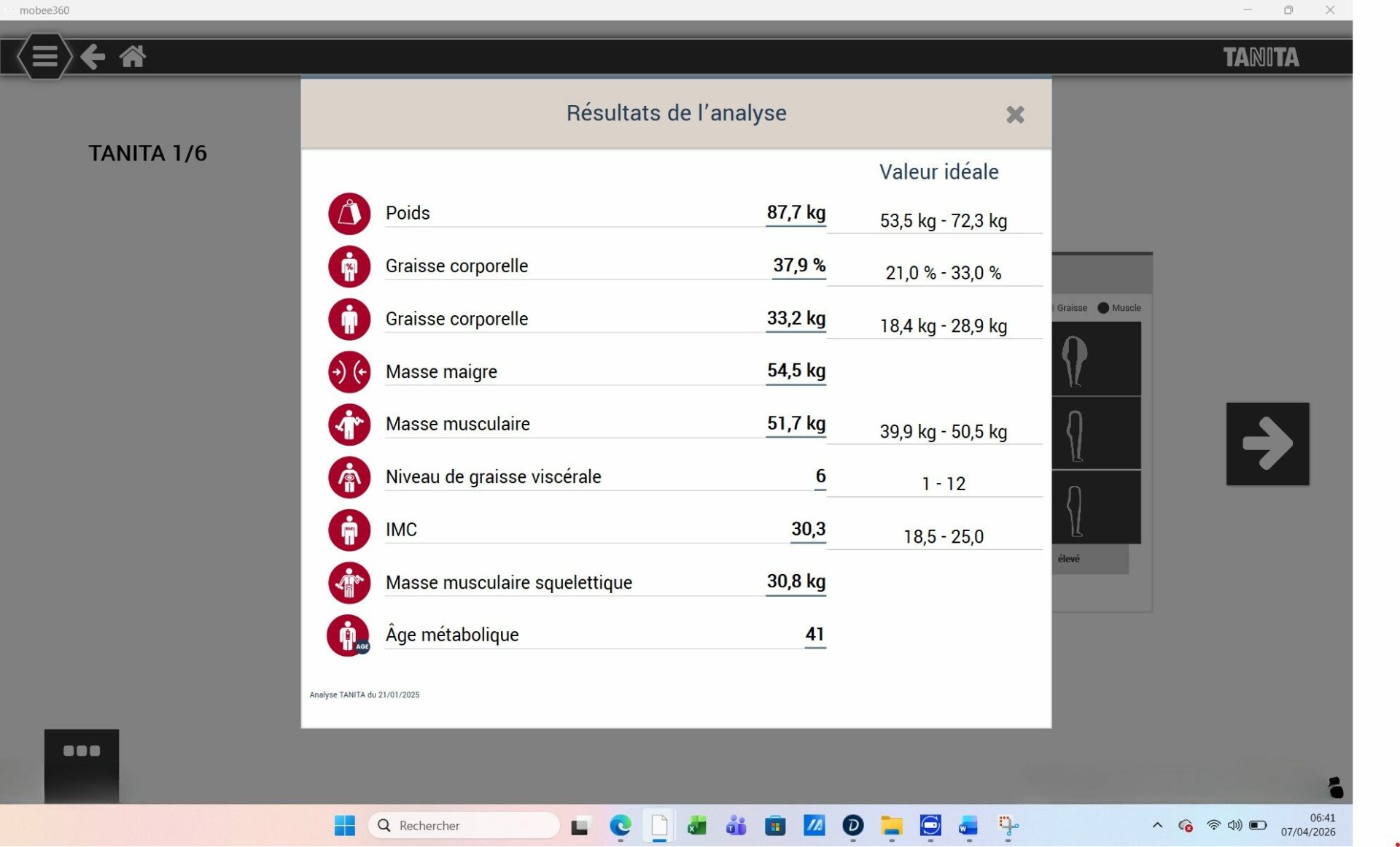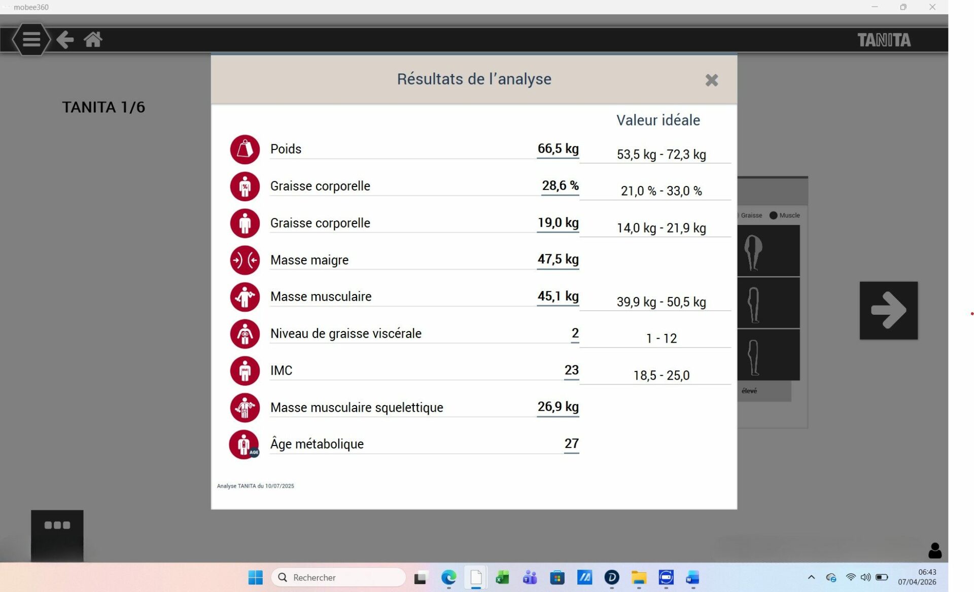 • Graisse viscérale : 6 → 2 (excellent)